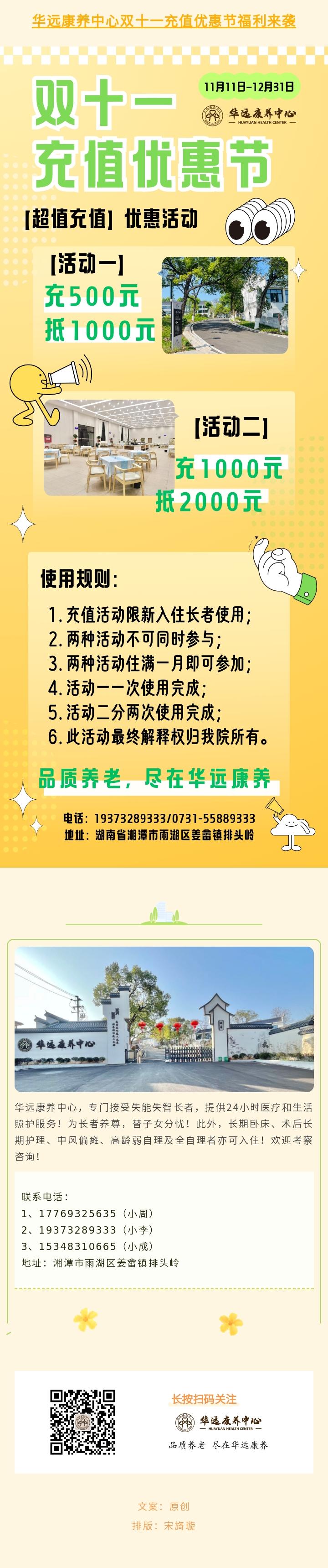 華遠(yuǎn)康養(yǎng)中心雙十一充值優(yōu)惠節(jié)福利來襲